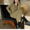 Fashion commuter coat medium and long women's solid color sweater jacket women's high sense lazy loose shoulder sleeves