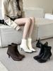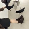 7CM fashionable and foreign style is thin, elastic and thin boots, female celebrity style versatile splicing square head thin heel small short boots,