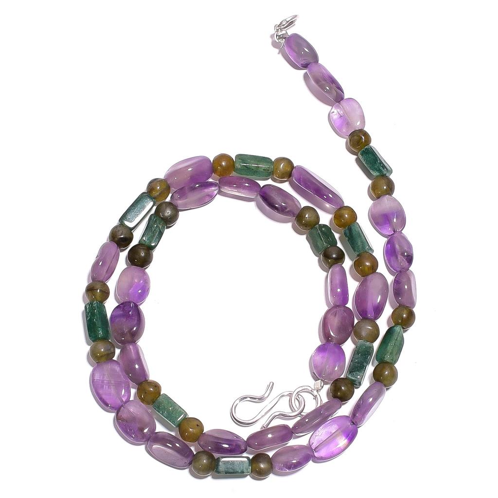 Natural Amethyst Aventurine Labradorite Gemstone Beads Necklace 17" UB-5006 UB-5006