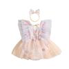 Detské dievčenské 2-dielne letné oblečenie Romper s kvetinovou výšivkou s volánovými rukávmi Tylové šaty so súpravou čelenky