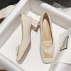 2024 New Single Shoes Women's Square Toe Medium Heel Women's Shoes French Soft Leather Thick Heel Large Size Women's Shoes