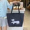 Puppy Embroidery Drawstring Shoulder Bag Bow Spotted Women's Handbag Casual Canvas Tote Bag Beach